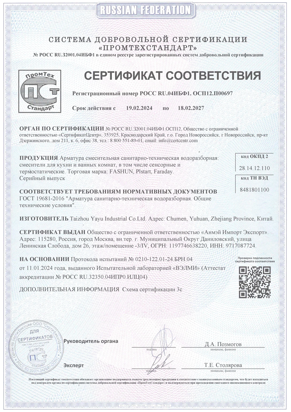Завод FASHUN занимается изготовлением смесителей с 2007 года, выпускает смесители для европейского и американского, а с 2019 года и для российского рынка.