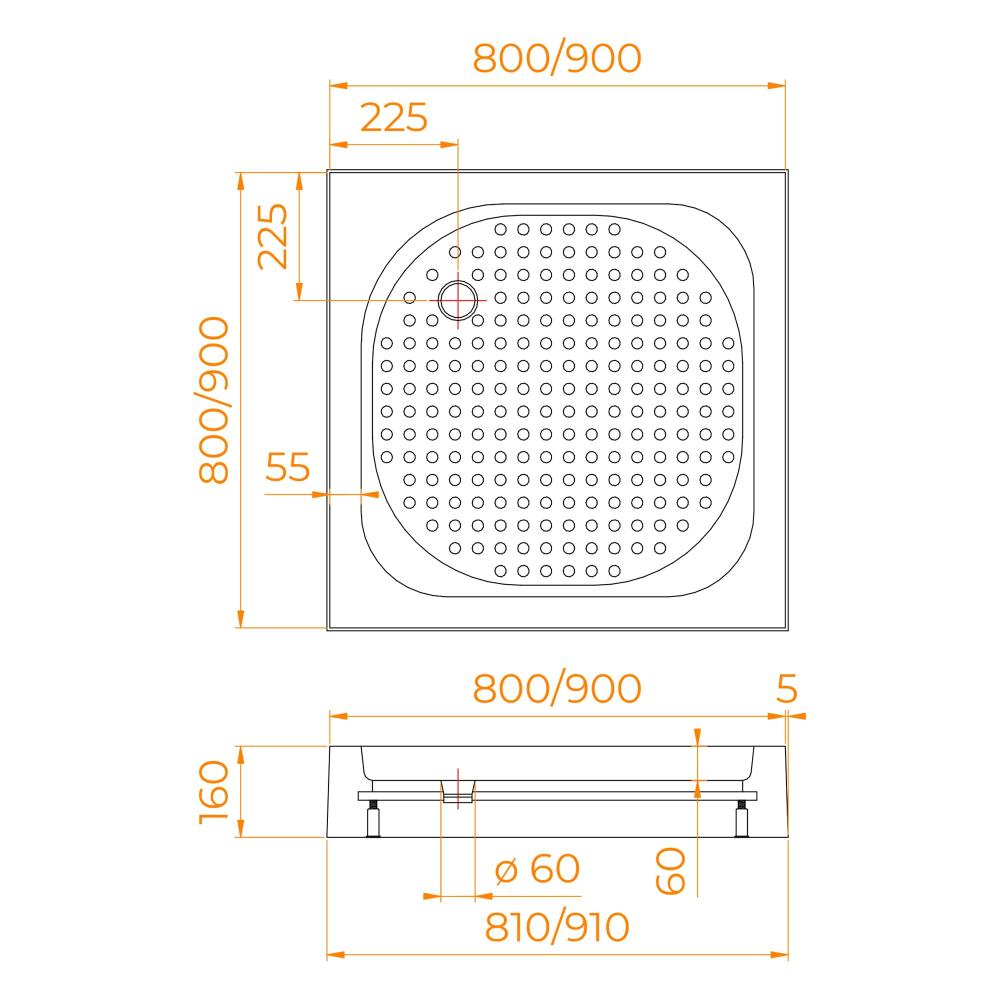 Душевой поддон квадратный RGW LUX/TN 800x800