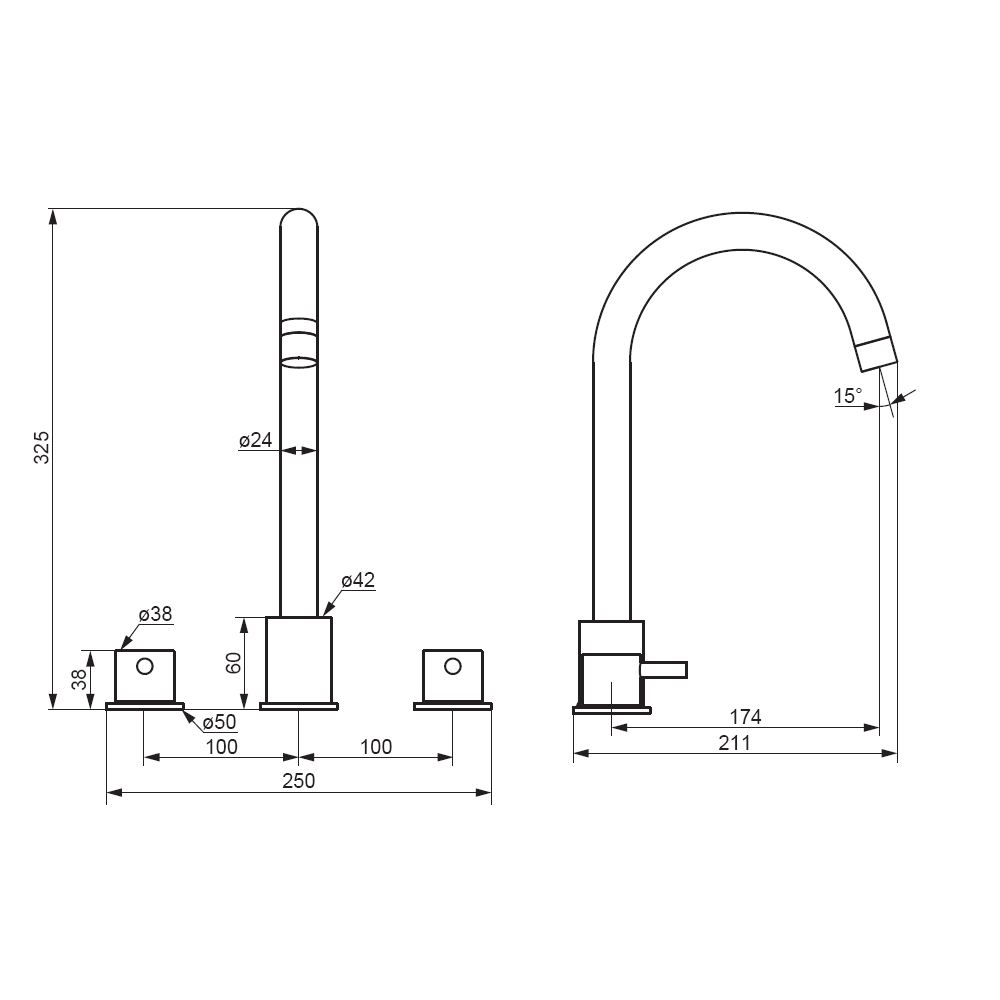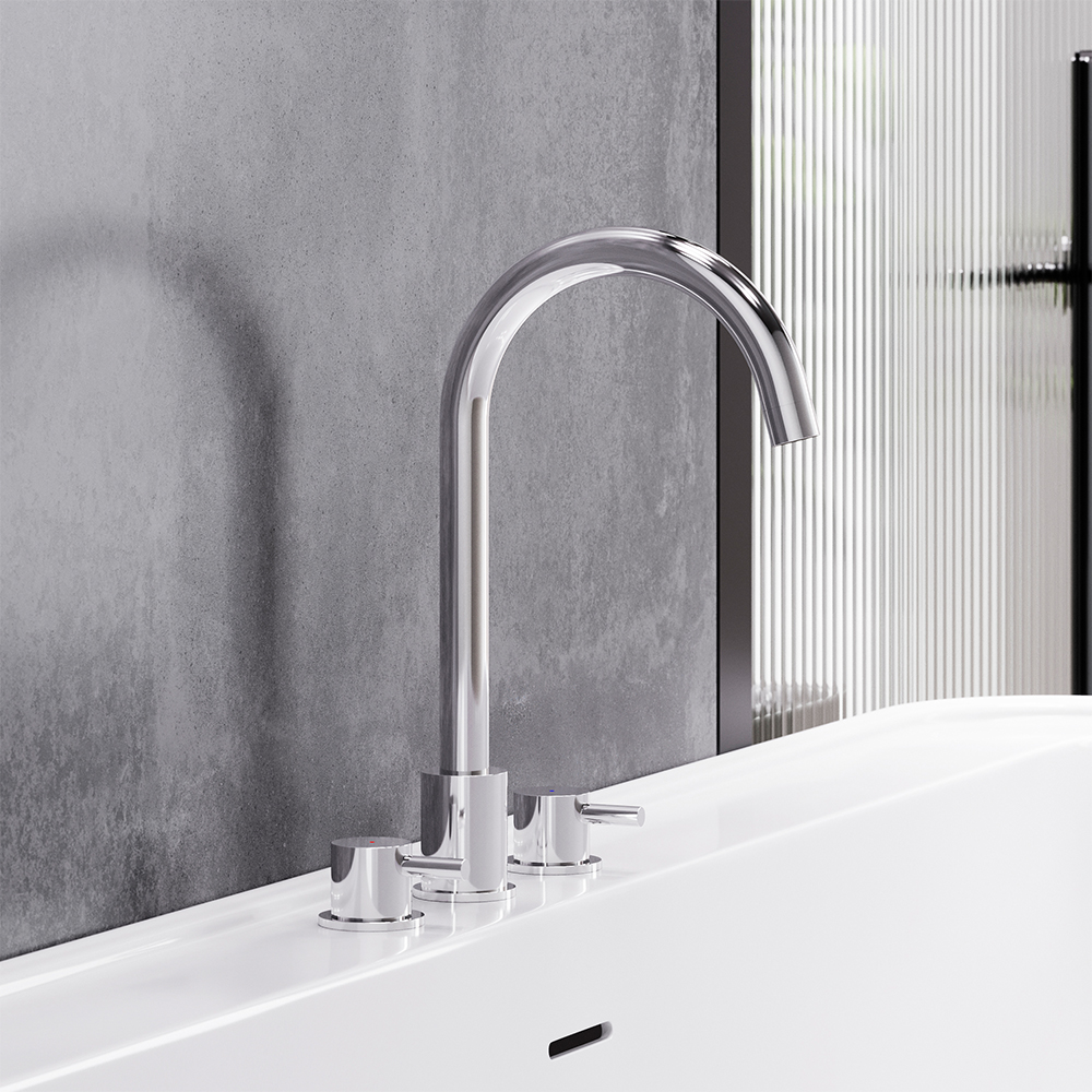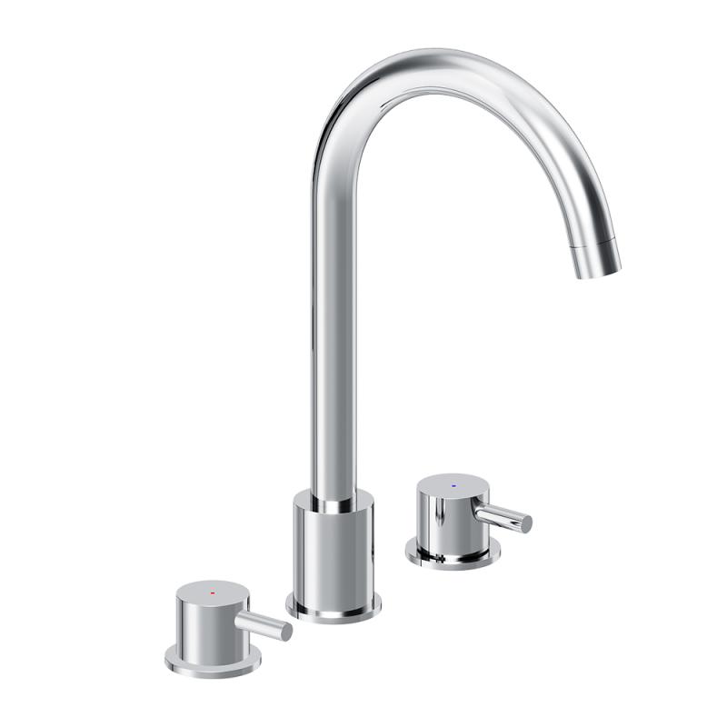 - Смеситель для раковины, встраиваемый в столешницу трёхсекционный