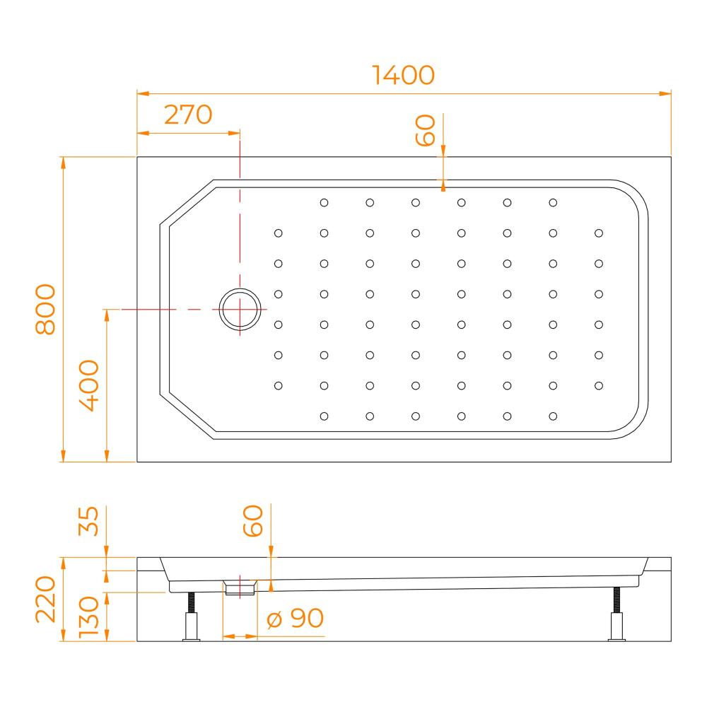 Душевой поддон прямоугольный RGW STYLE 800x1400