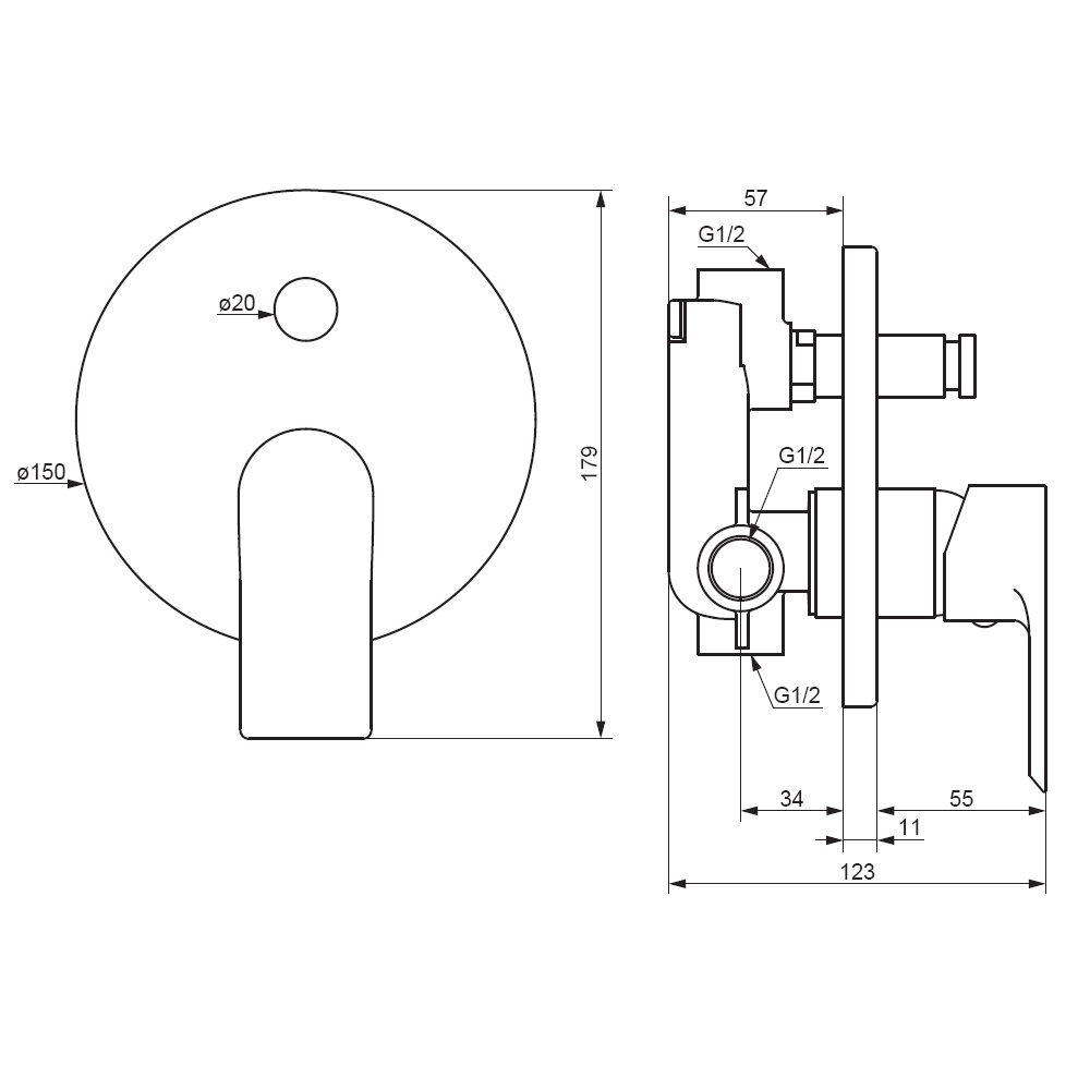 - Габариты, мм (ГхШхВ) - 123х150х179