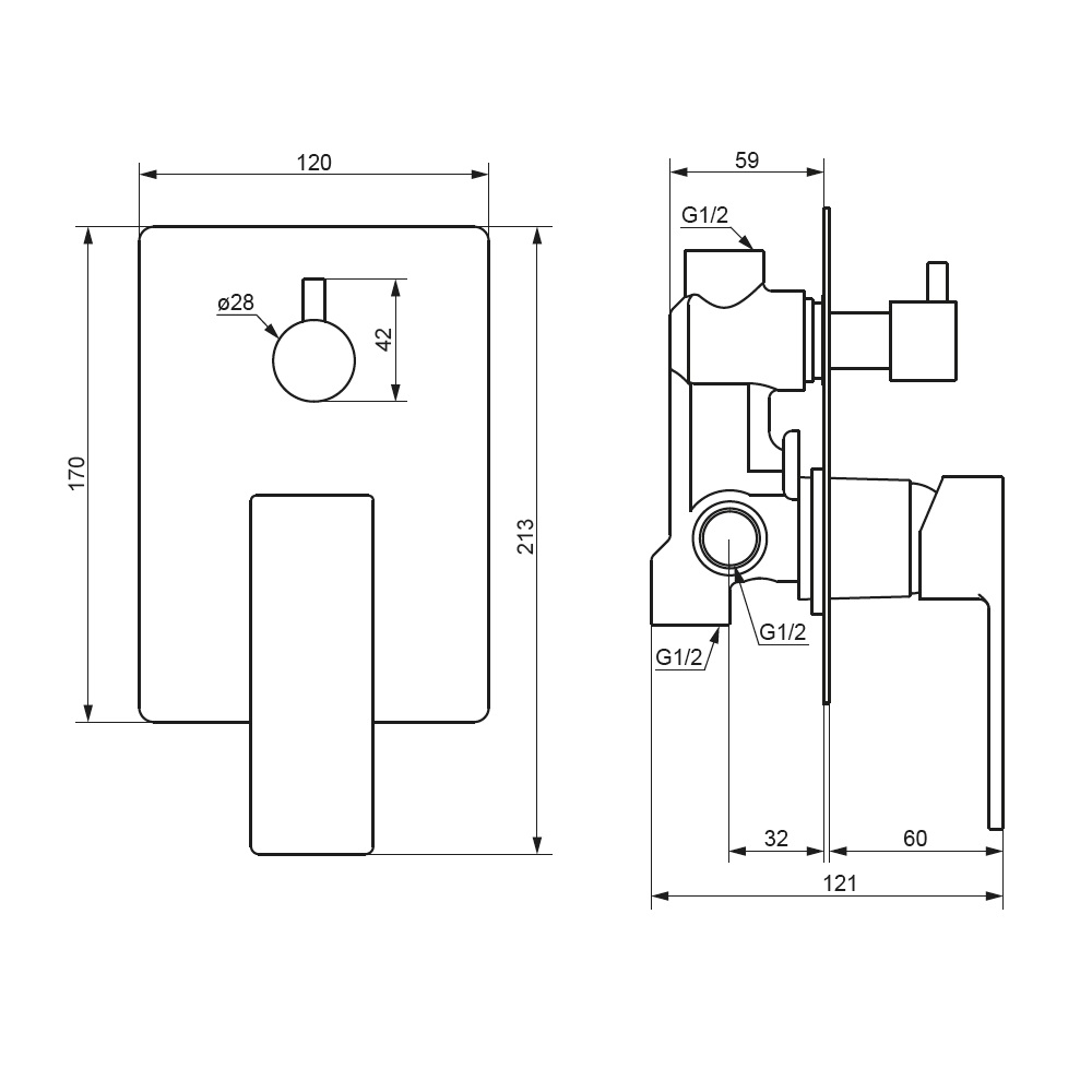 - Габариты, мм (ГхШхВ) - 121х120х213