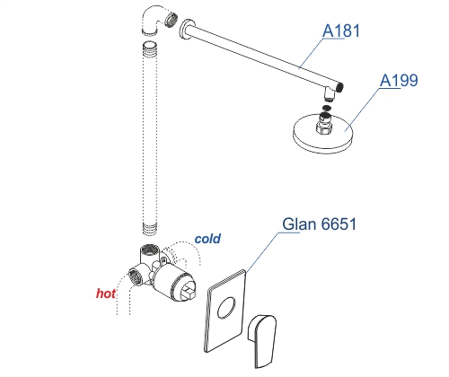 A66181 Встраиваемый комплект для душа с верхней душевой насадкой Wasserkraft