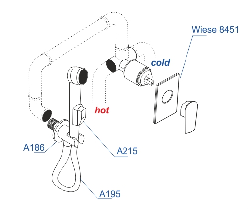 A84095 Встраиваемый комплект для биде со шлангом 150 см Wasserkraft
