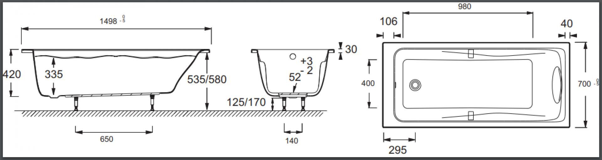 - Расположение слива - стандартное сбоку
