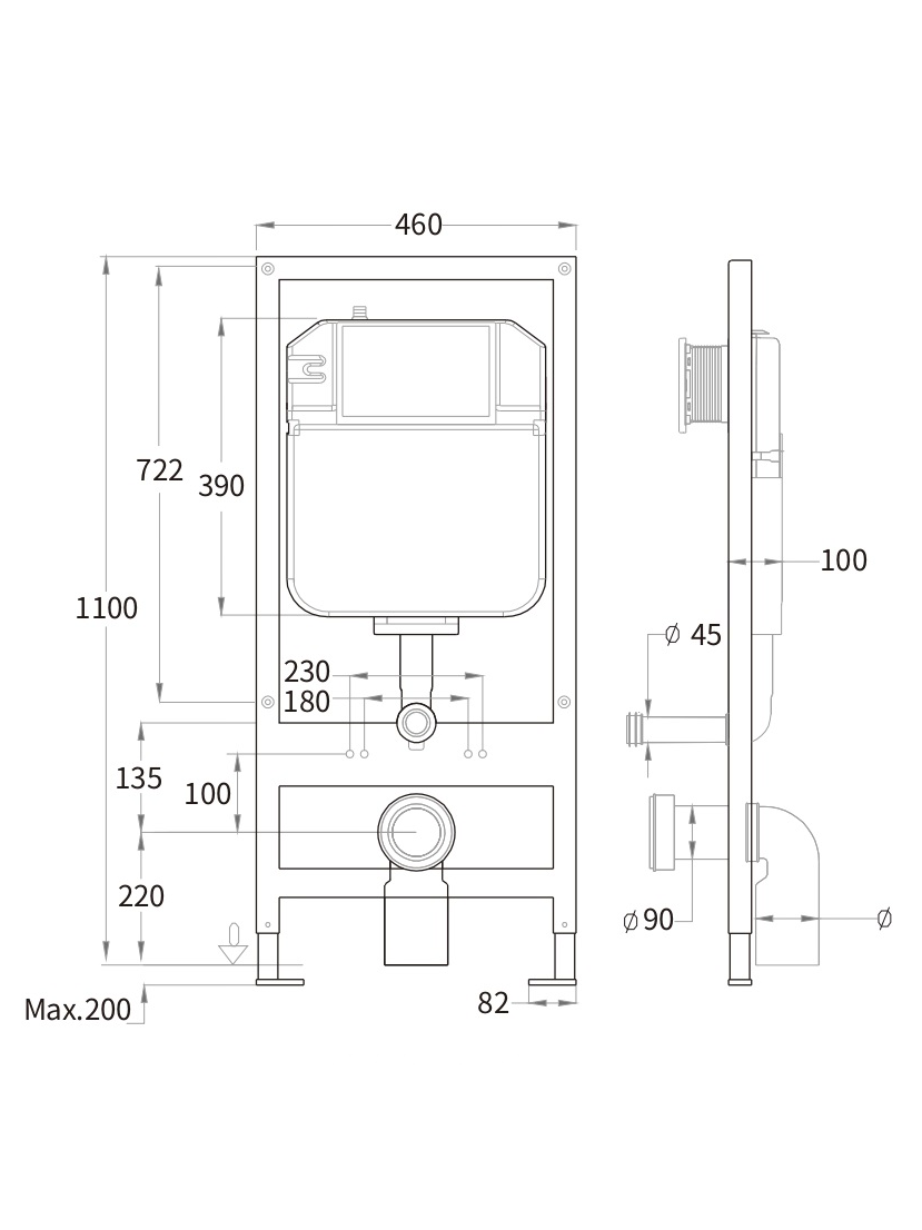 - Межосевое расстояние под крепеж унитаза: 18 и 23 см