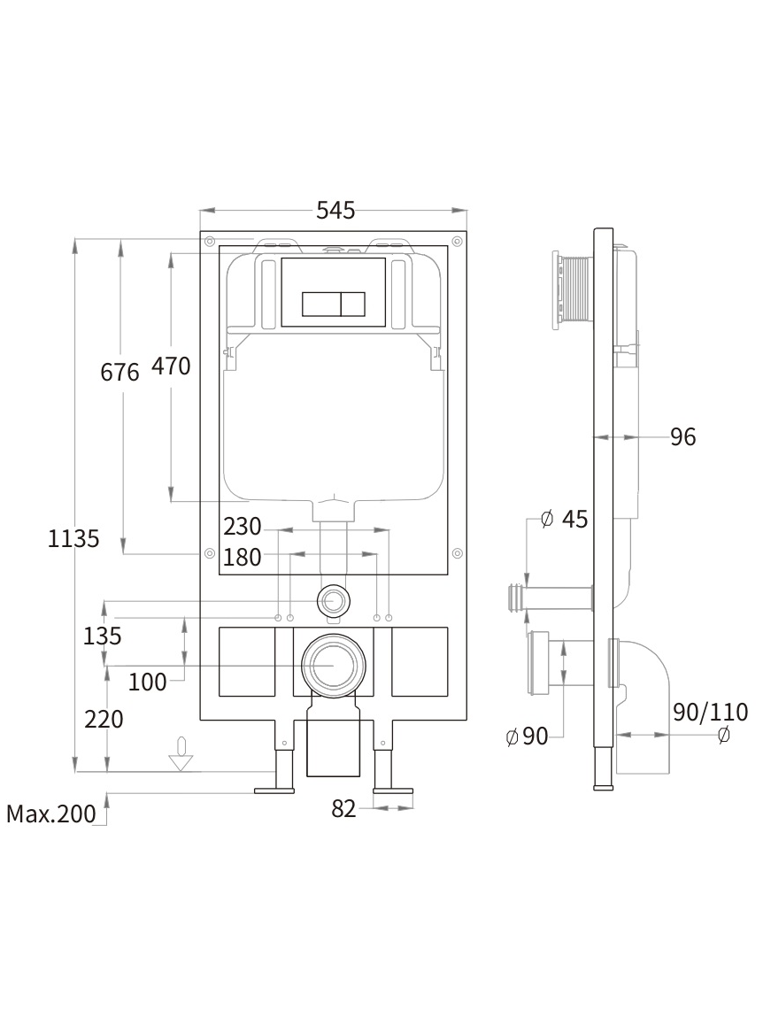- Межосевое расстояние под крепеж унитаза: 18 и 23 см