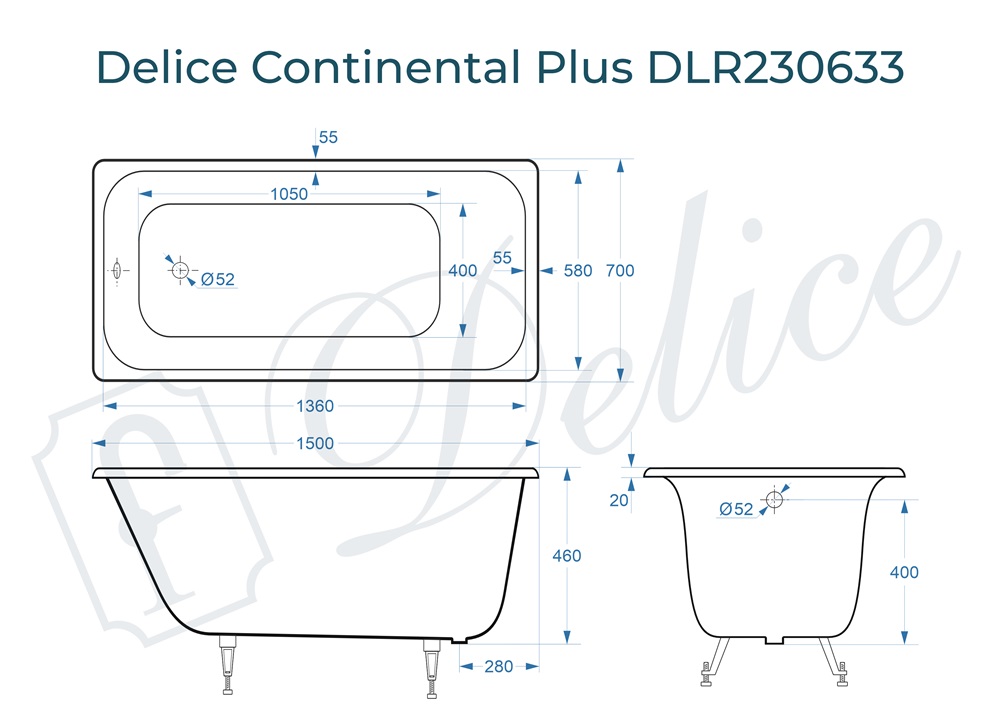 Чугунная ванна Continental Plus 150х70 DLR230633 Delice