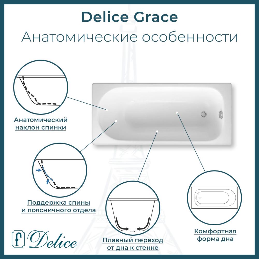 Описание чугунной ванны Delice Grace 170х70 с антискользящим покрытием