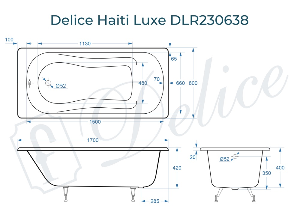 Описание чугунной ванны Delice Haiti Luxe 170х80