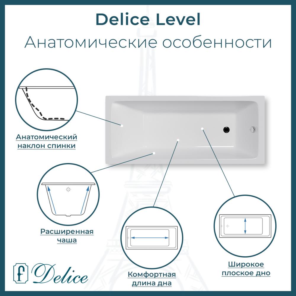 Для установки используются фирменные ножки Delice, которые имеют надежное и прочное крепление, обеспечивают высокую устойчивость ванны и регулируются по высоте. Высота на ножках варьируется от 58 до 62.5 см. Ножки выполнены из высокопрочного чугуна марки СЧ25, который выдерживает большие нагрузки. С помощью регулировки можно нивелировать геометрические отклонения пола, стен и углов в ванной комнате. Для модели Level подходит комплект ножек для серии Elite - артикул DLR000002.