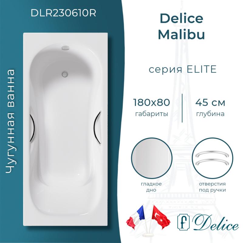 Чугунная ванна Malibu 180х80 с отверстиями под ручки DLR230610R Delice