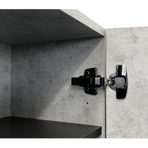 Подвесная шкаф колонна с двумя створками и пространством для открытого хранения. Створки оснащены петлями с плавным закрыванием и черными матовыми алюминиевыми ручками. За створками по две регулируемые по высоте полки. Шкаф-колонна универсальна, может быть подвешена переворачиванием в правом и левом варианте.