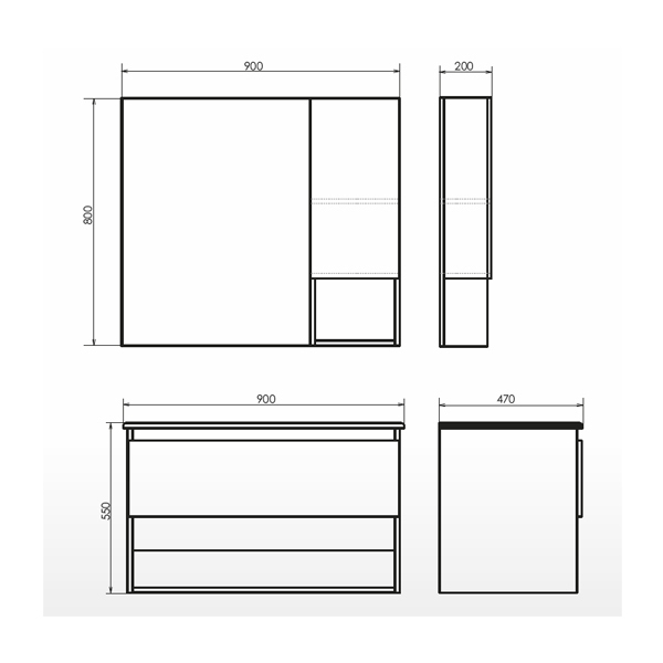 Зеркальное высококачественное полотно с амальгамой на основе серебра. Створка оснащена петлями с системой плавного закрывания. За створкой одна полка.
