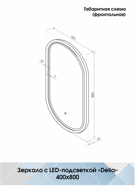 Зеркало с подсветкой Delia Grey 400х800 двойная посветка на один сенсор (внутренняя и внешняя) ЗЛП3824 Continent