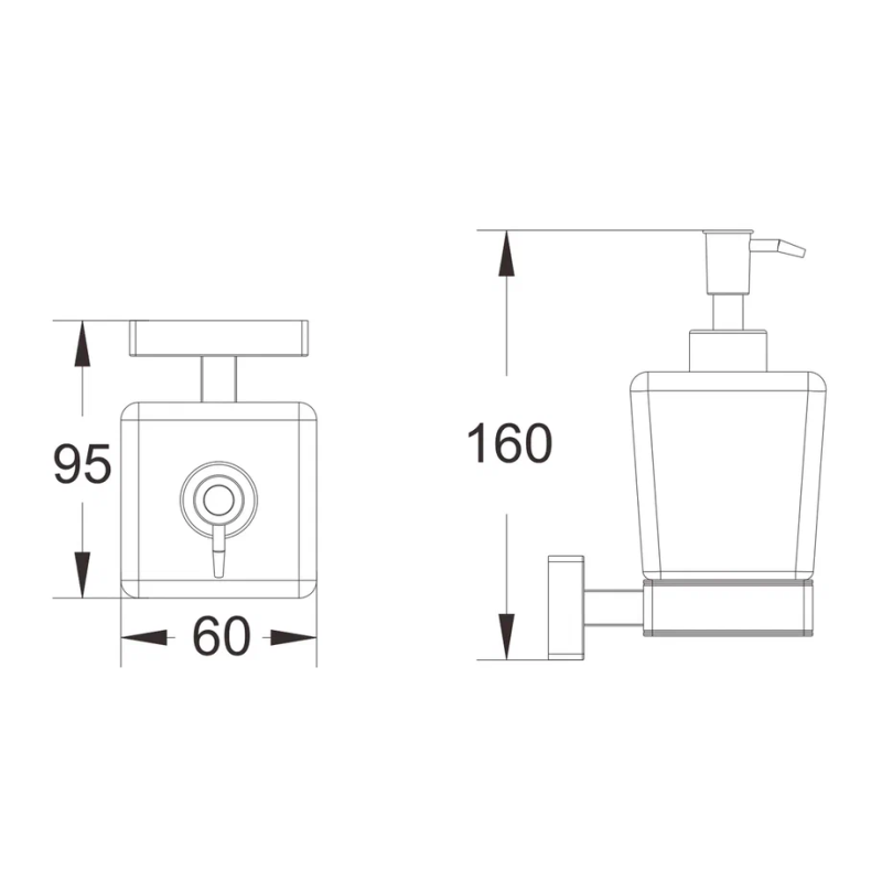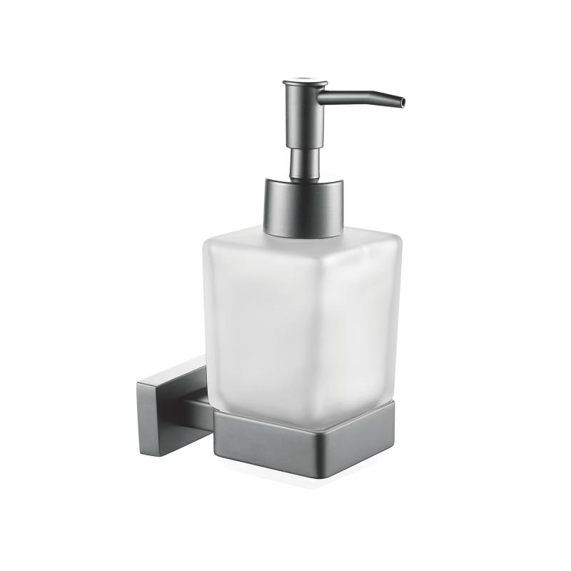 Дозатор жидкого мыла Shevanik SG5644T, оружейная сталь. Материал: латунь/стекло. Монтаж: настенный. Форма розетки: прямоугольная.