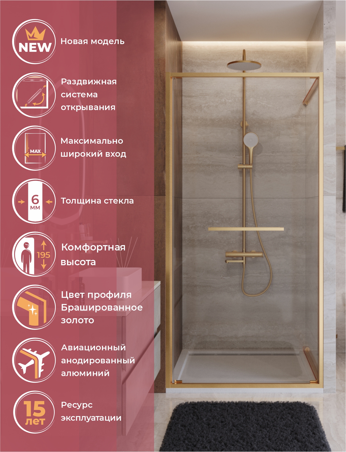 ● Коллекция включает шесть решений под любую задачу: квадратную (A-FS-1, A-FS-11), прямоугольную (AH-FS-1, AH-FS-11) и дверь в нишу (BF-FS-1, BF-FS-11). Высота 1950 мм и популярные размеры упрощают интеграцию в любое пространство.