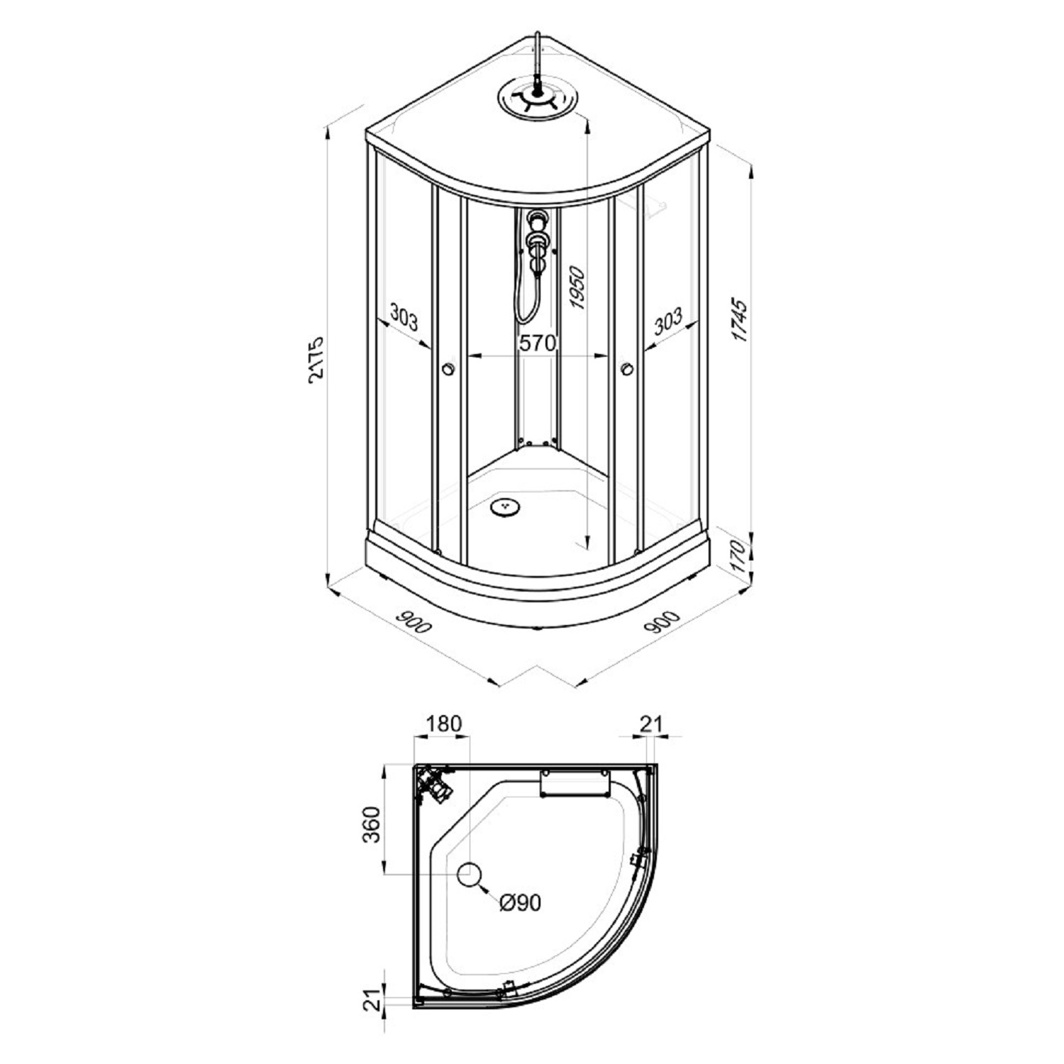- Габариты, см (ГхШхВ) - 88х88х217,5
