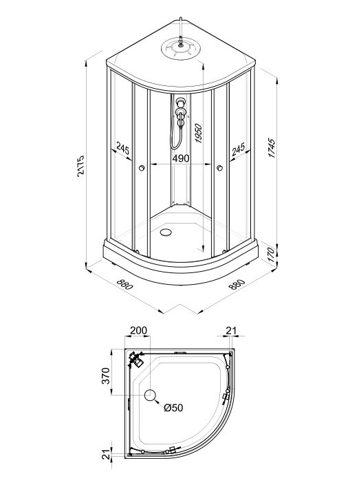 - Габариты, см (ГхШхВ) - 88х88х217,5