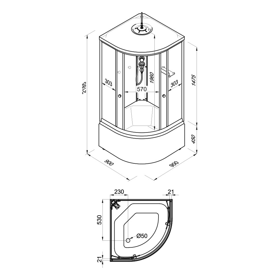 Душевая кабина Полосы 90*90 Б (9 мест+сифон D50) Щ0000061836 Тритон