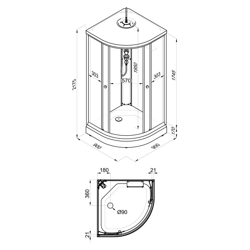 Душевая кабина Топ 90*90 А (7 мест+сифон D90) Щ0000064609 Тритон