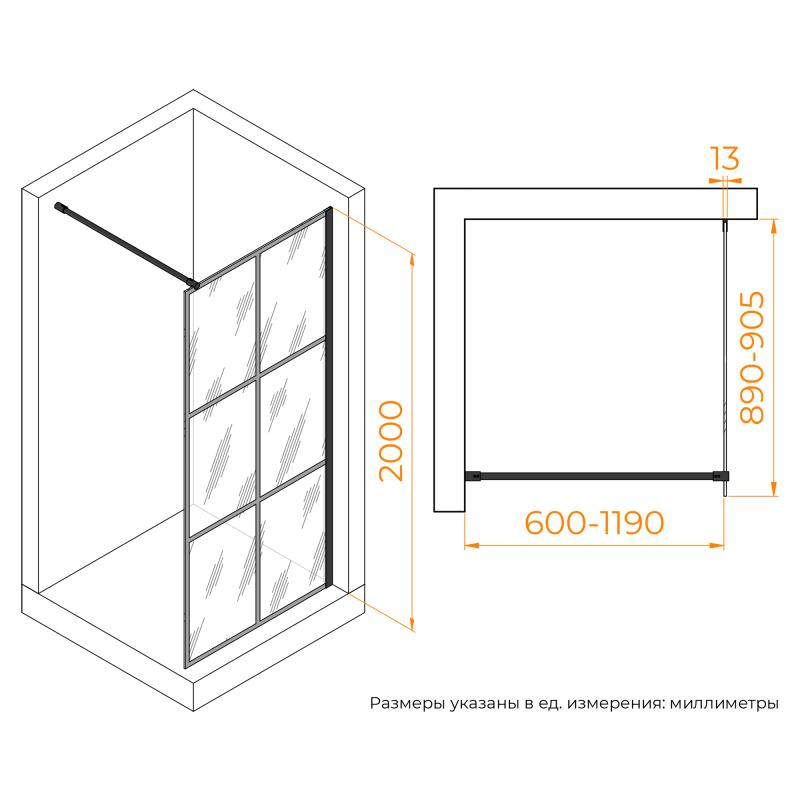 Душевая перегородка RGW WA-011B 900, стекло с рисунком (шелкография), профиль черный