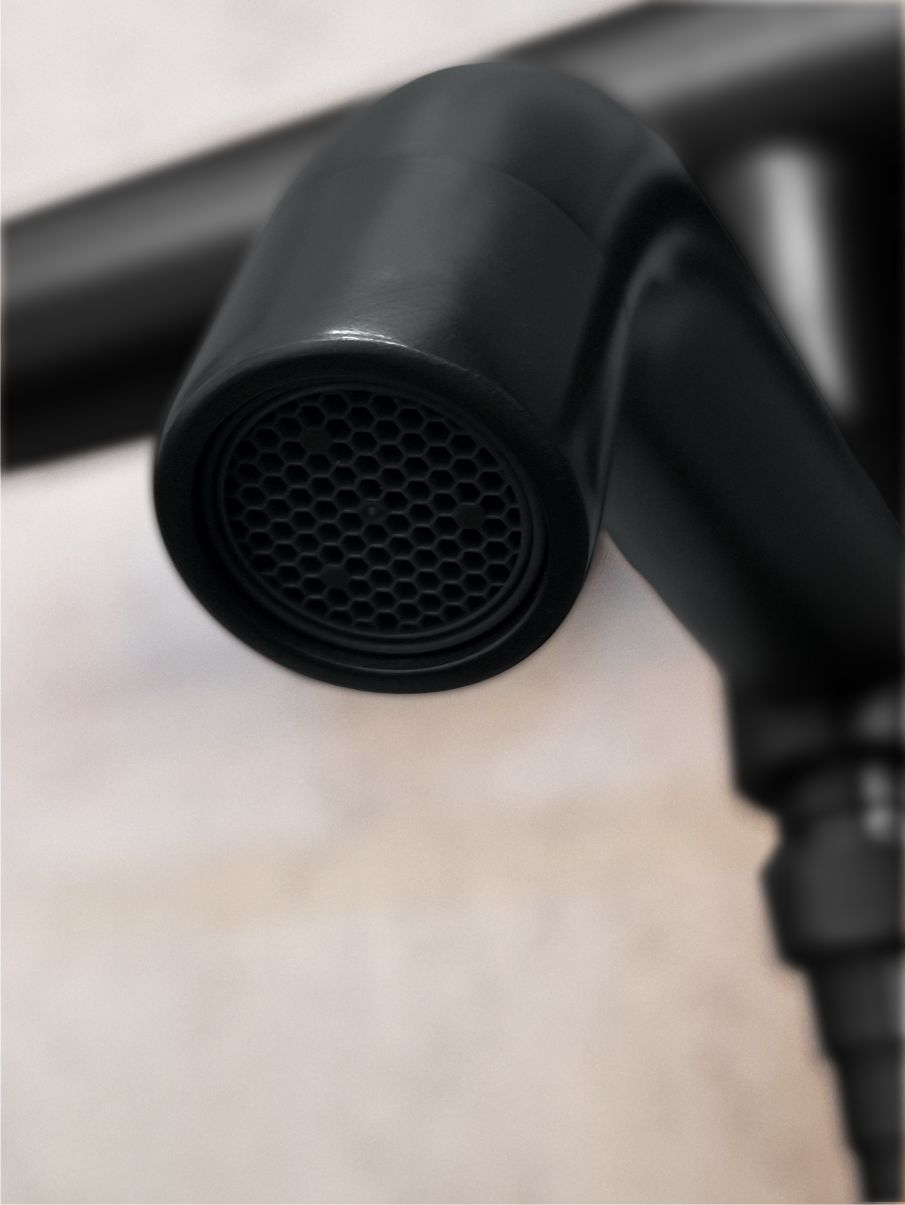 - Комплектация: смеситель настенного монтажа, телескопическая штанга с держателем для ручного душа, ручной душ, гибкий полимерный шланг, верхний душ, аэратор эксцентрики, чаши декоративные