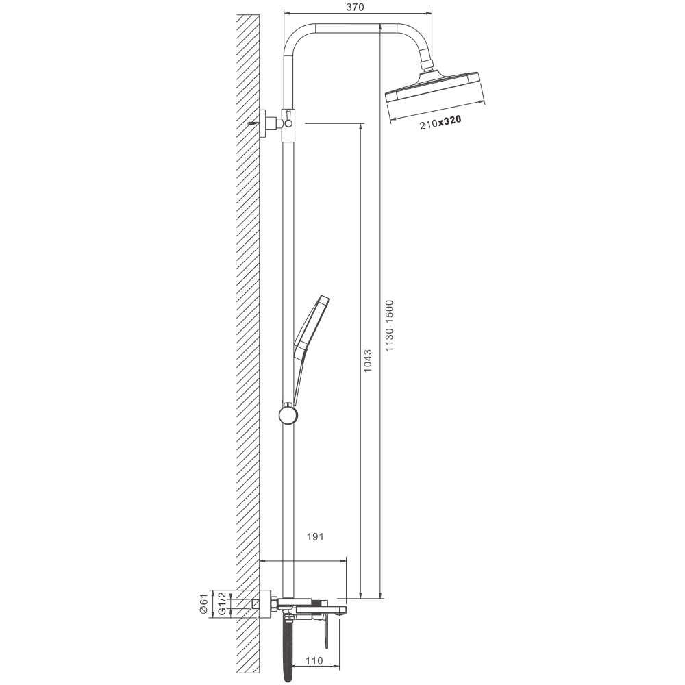 смеситель, верхний душ, душевая лейка, держатель душевой лейки, шланг, стойка