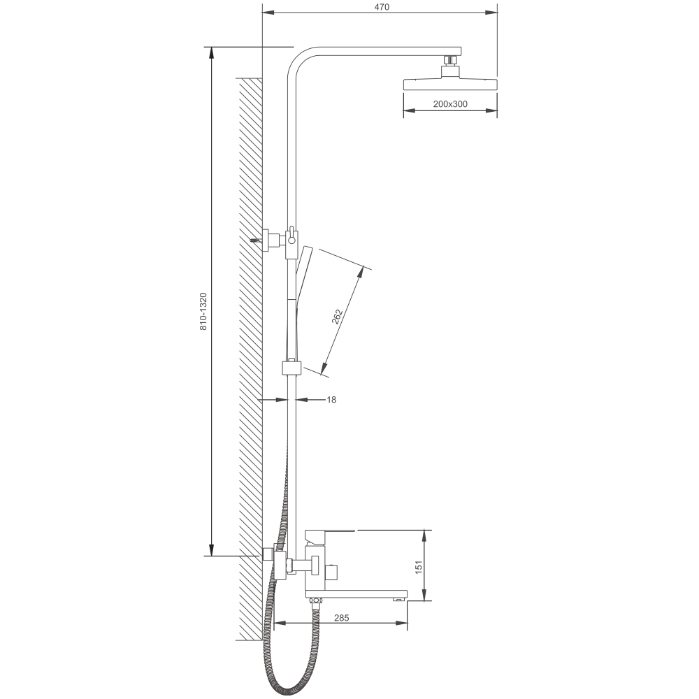 смеситель, верхний душ, душевая лейка, держатель душевой лейки, шланг, стойка
