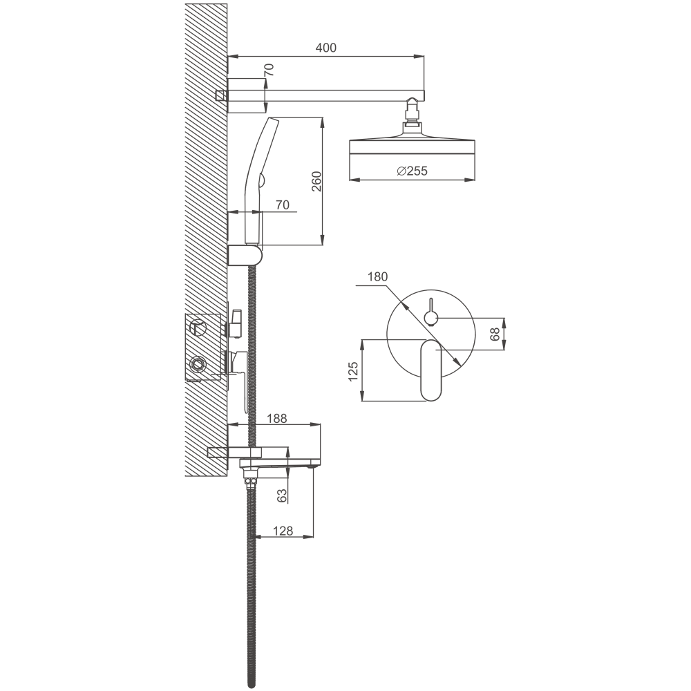 Душевая система BELZ встроенная оружейная сталь (B80713-3)