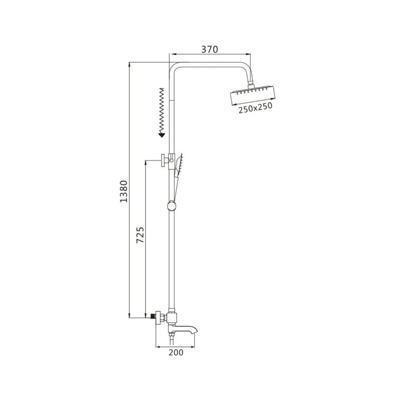 - Комплектация: смеситель, верхний душ, штанга, лейка, шланг, эксцентрики, декоративные чашки, металлический шланг