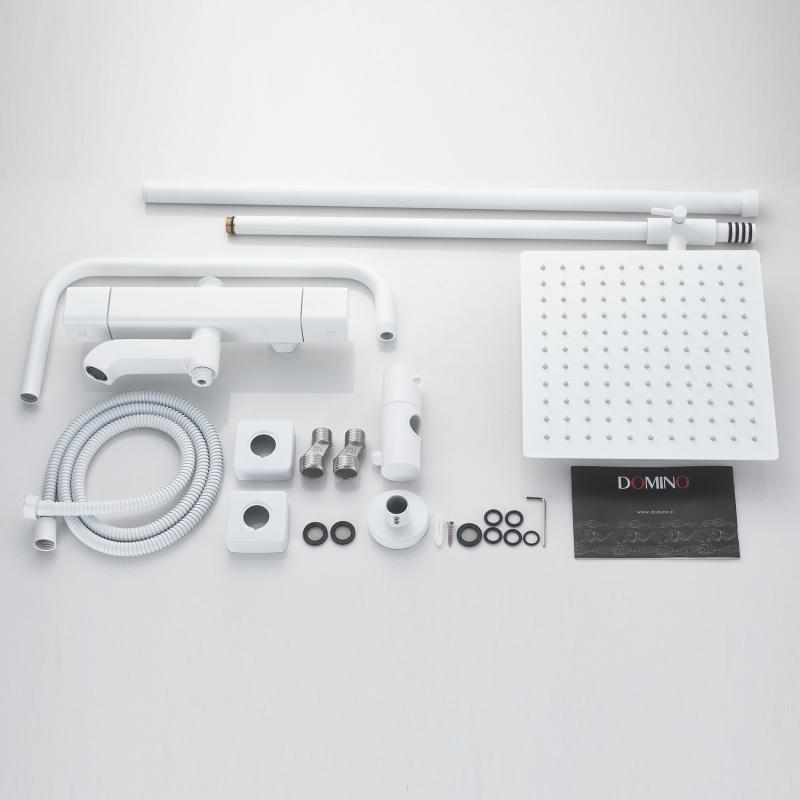 Душевая система Shevanik S3096C в белом матовом стиле — это стильное и функциональное решение для вашей ванной комнаты. Изготовленная из высококачественной латуни, она станет надёжным элементом интерьера на долгие годы. Термостатический картридж обеспечивает безопасность и комфорт при использовании, а излив для наполнения ванны легко складывается, когда не нужен.