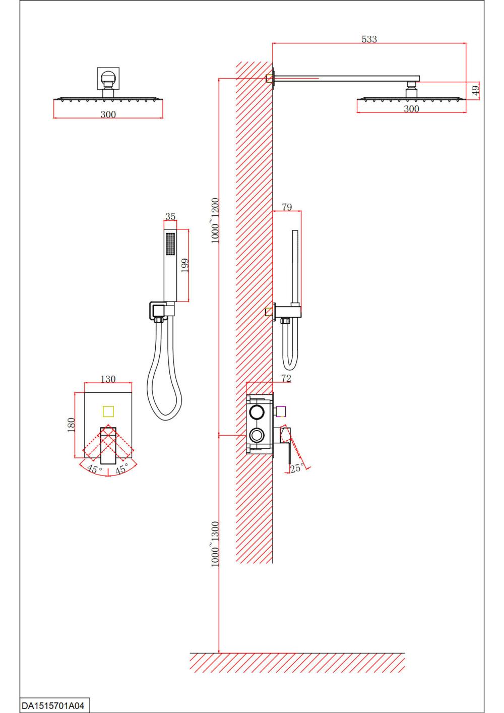 Смеситель, встраиваемая часть: блок, держатель ручного душа, ручная лейка, держатель верхнего душа, тропический верхний душ, душевой шланг, паспорт, брендовая сумка