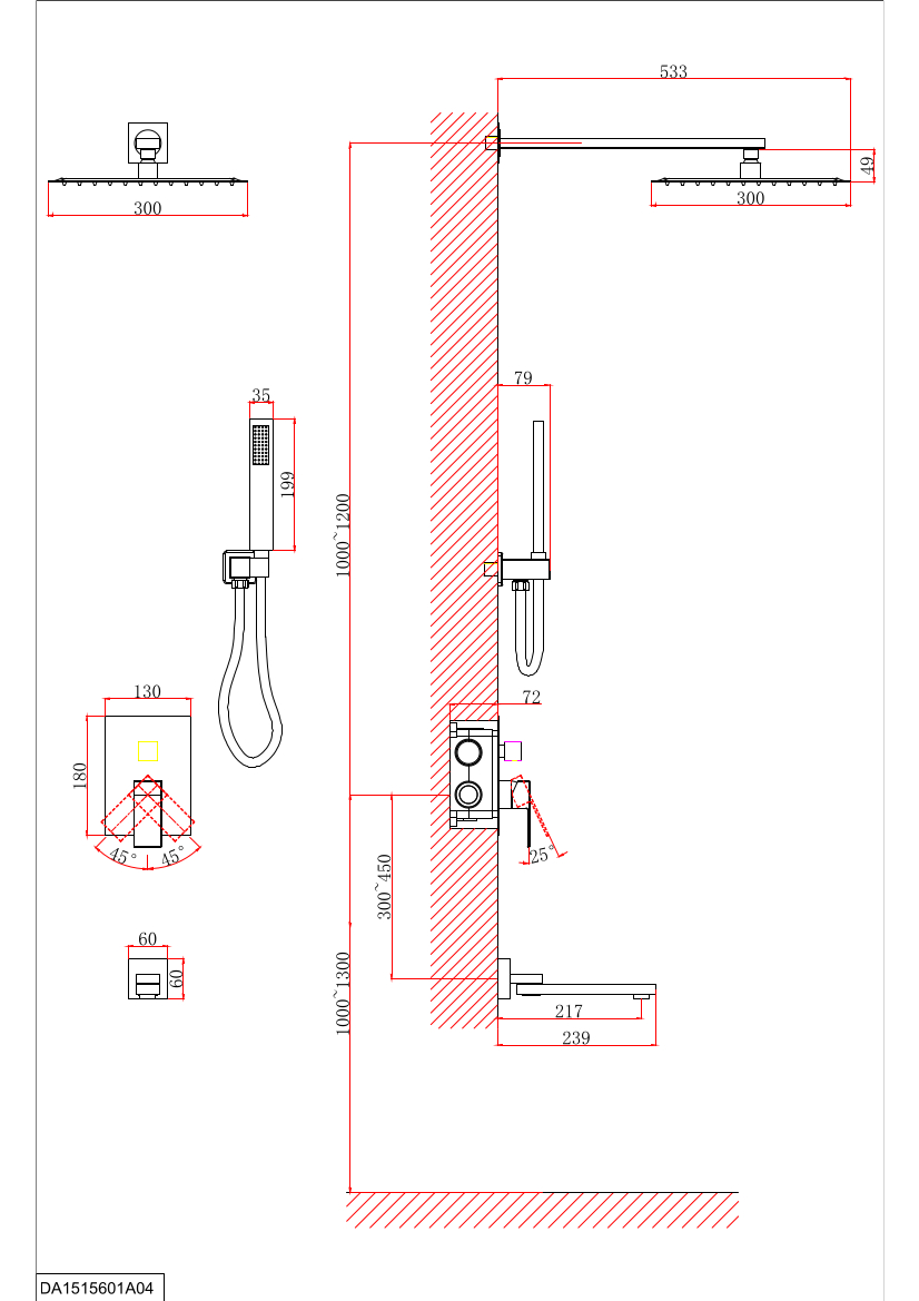 Душевая система для ванны и душа D&KBayern.Liszt DA1515601A04 встраиваемый с изливом хром