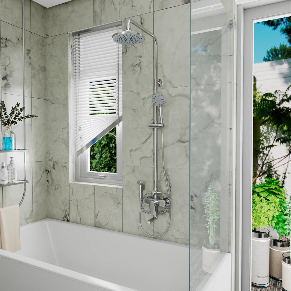 - Душевая трехрежимная лейка и шланг длиной 150 см уже в комплекте