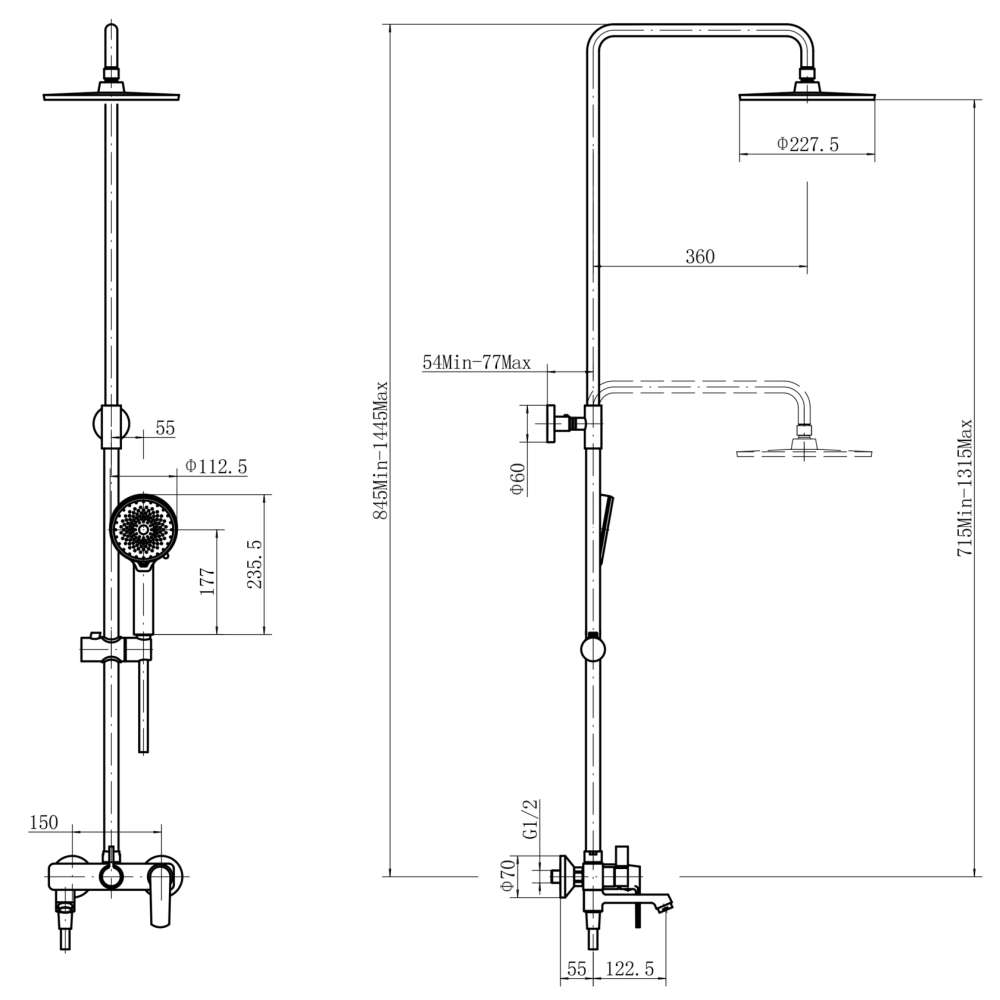 ручная лейка: ABS, D=112 мм, 3 режима, хром/серый