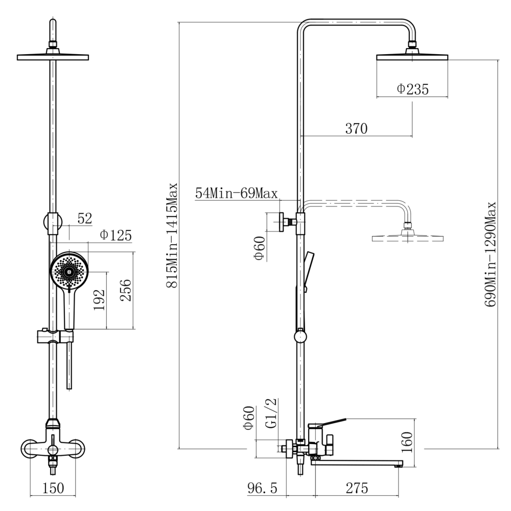 Душевая система FASHUN с тропическим и ручным душем (A2487)