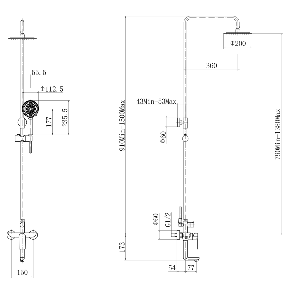 штанга: сталь SUS304, H=830-1410 мм, сатин