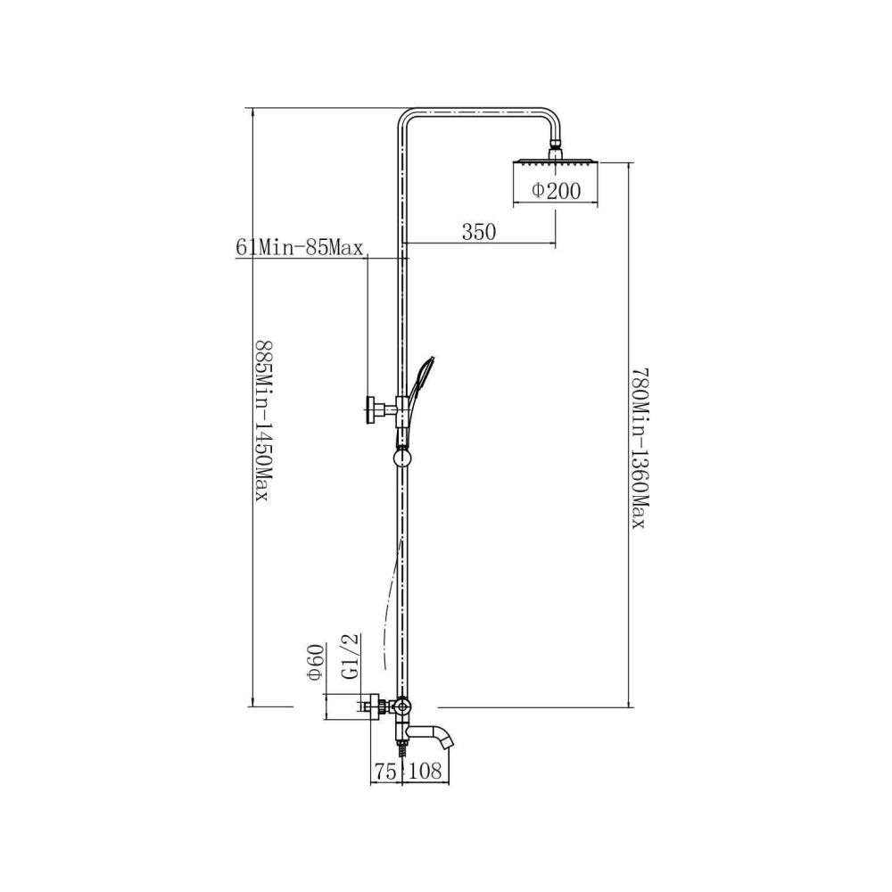 штанга: сталь SUS304, H=780-1360 мм (от верхнего излива), чёрный