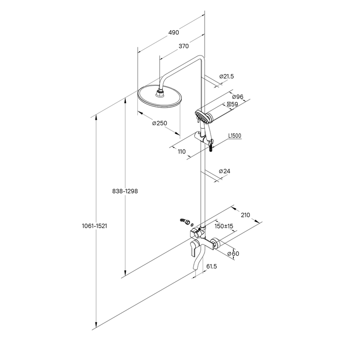 Увеличенный вынос верхнего душа (370 мм) дарит максимальную свободу движений, а регулируемая высота стойки (от 1061 до 1521 мм) позволяет принимать душ с комфортом даже самым высоким.