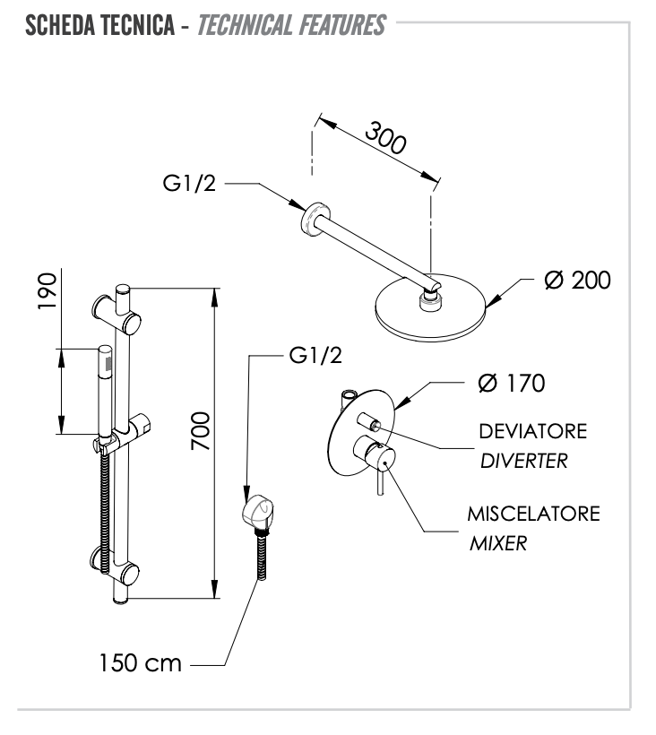 Душевая система Remer X Style X09S01ODO, золото глянцевое