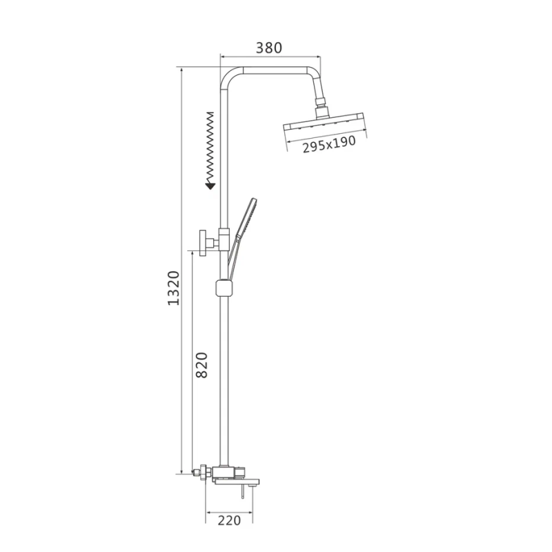 Душевая система Shevanik S8236H, черный. Количество режимов струи: 3. Размер верхнего душа: 29,5x19 см. Управление: рычажное. Излив для наполнения ванны: да.