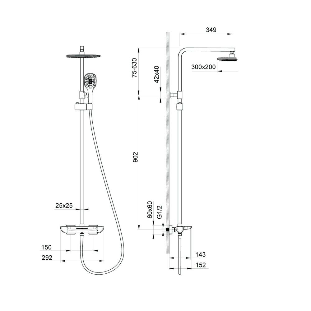 Смеситель - 1 шт.Штанга тропического душа, выдвижная - 1 шт.Держатель ручной лейки (пластик) - 1 шт.Ручная лейка 3-х режимная (пластик) - 1 шт.Тропический душ (пластик) - 1 шт.Шланг душа 1,5 м - 1 шт.Эксцентриковые соединители - 2 шт.Декоративные отражатели - 2 шт.Крепеж к стене с декоративным отражателем - 1 шт.Инструкция - 1 шт.