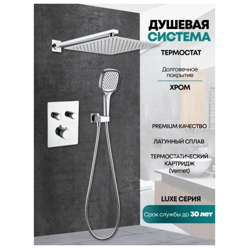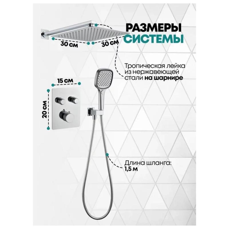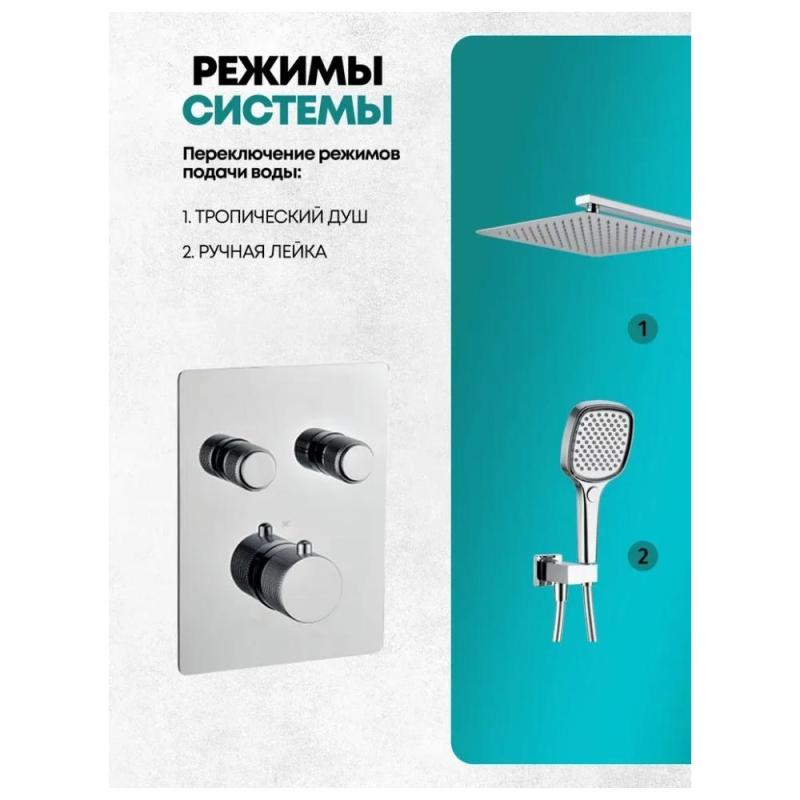 Душевая система с тропическим душем и термостатом встраиваемая без излива.