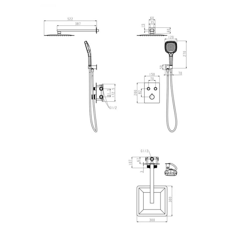 Душевая система встраиваемая (без излива) Grocenberg GB5040CR, хром