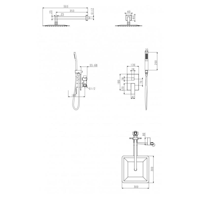 Душевая система встраиваемая (без излива) Grocenberg GB5089BL-3, черный