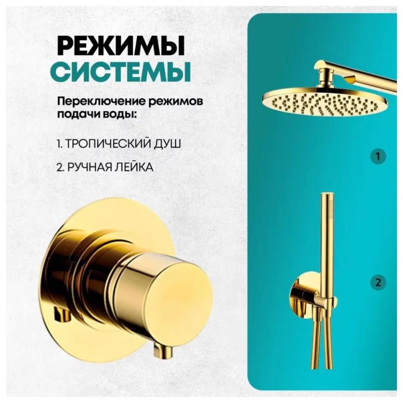 Душевая система встраиваемая (без излива) Grocenberg GB5090GO, золото