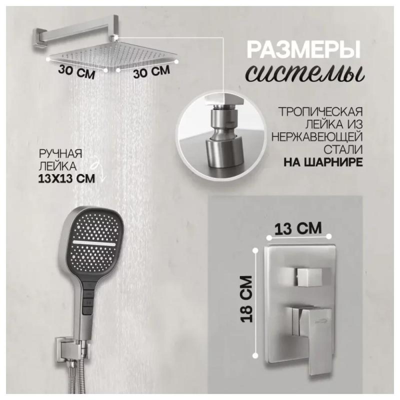 Верхний душ: размер 30x30 см ,квадрат