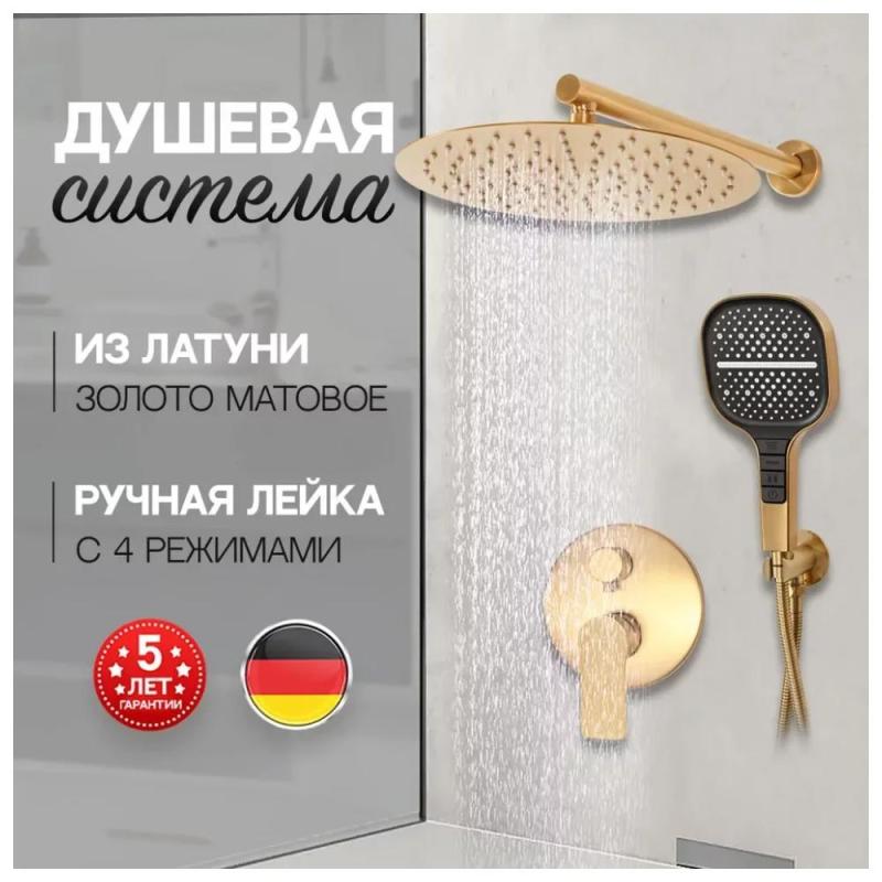 Душевая система встраиваемая (без излива) Hansberge H6090MG, матовое золото