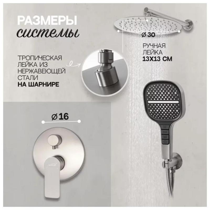 Верхний душ: диаметр 30 см ,круг